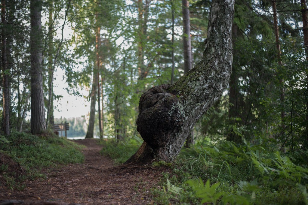 Rantapolun vieressä sijaitsee Isosuntin niemen mieleenpainuvin yksityskohta – koivu, jossa on valtava pahka. Tästä riitti runsaasti hupia lapsille.