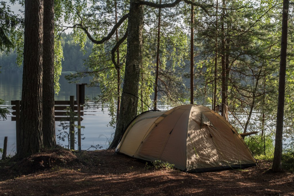 Sopivia telttapaikkojahan Isosuntilla kyllä riittää vaikka isommallekin seurueelle, ja ainoina retkeilijöinä saimme valita parhaan rantapaikan.